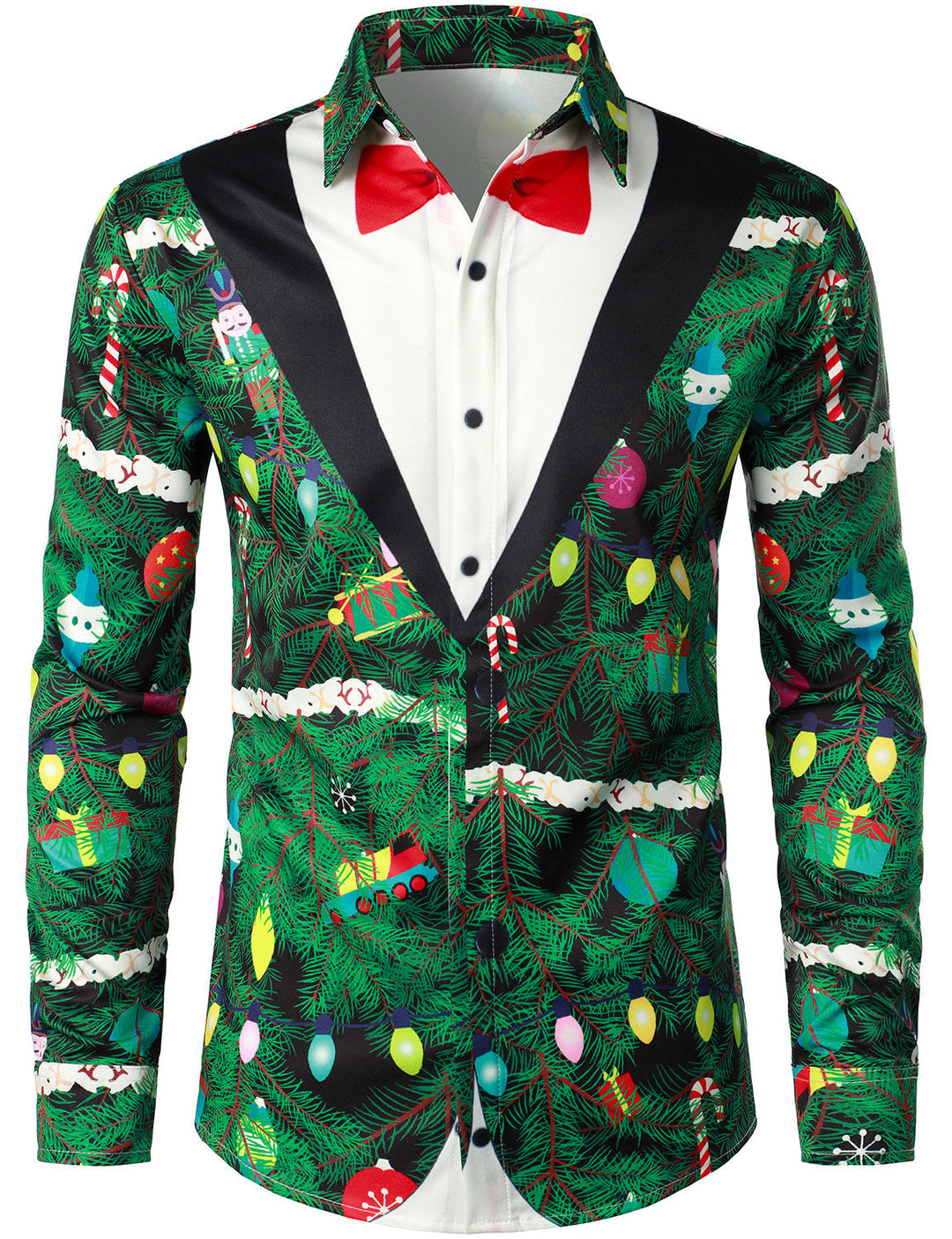 Gason - Cămașă cu mâneci lungi Pentru Bărbați, cu Imprimeu Camuflaj brad de Crăciun, Croială Normală, Tinută Tematică