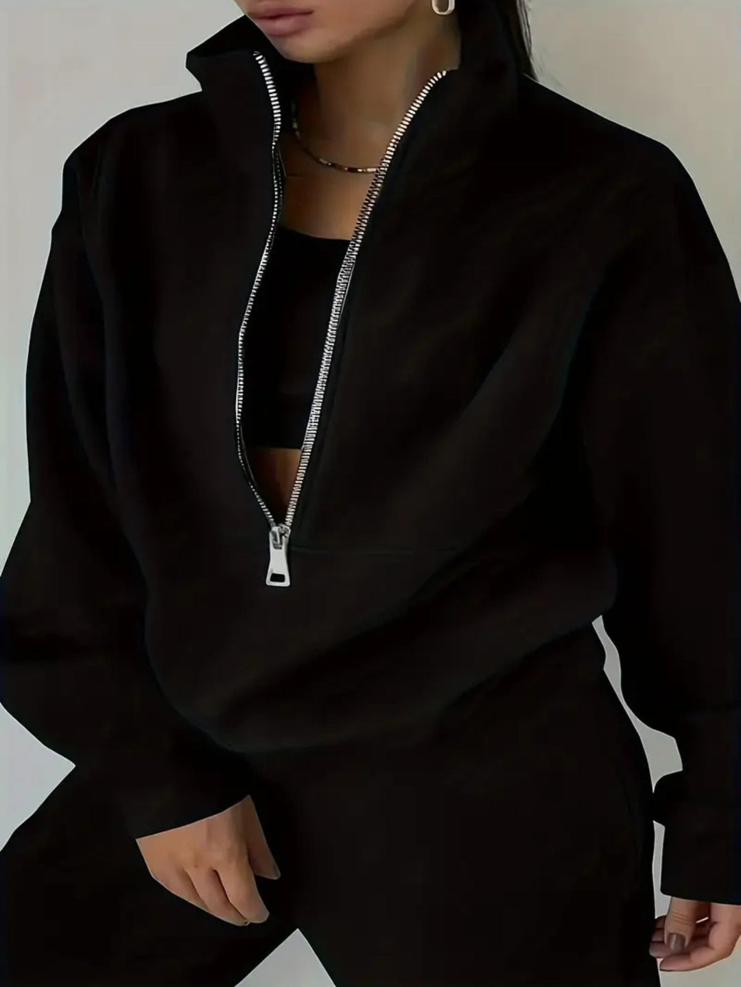 Helsa - Hanorac Casual Cu Jumătate De Fermoar Si Buzunar Pe Mânecă