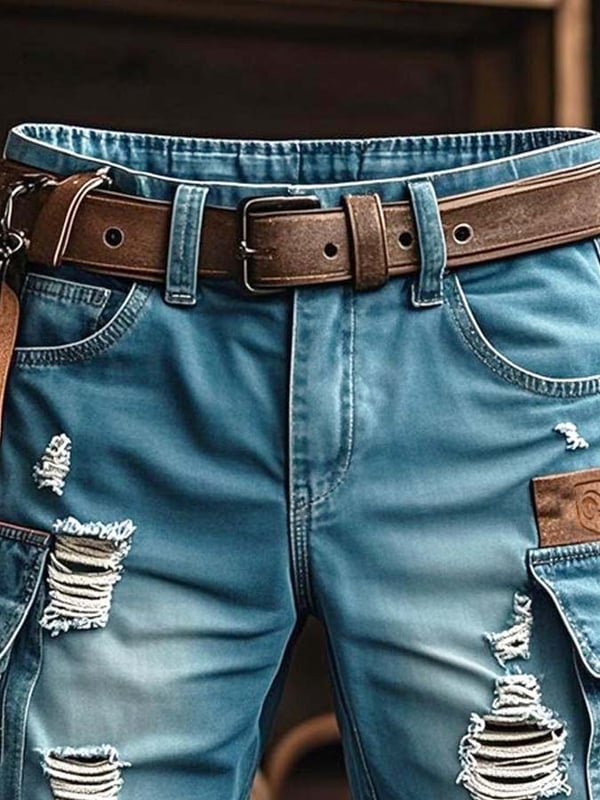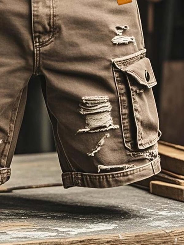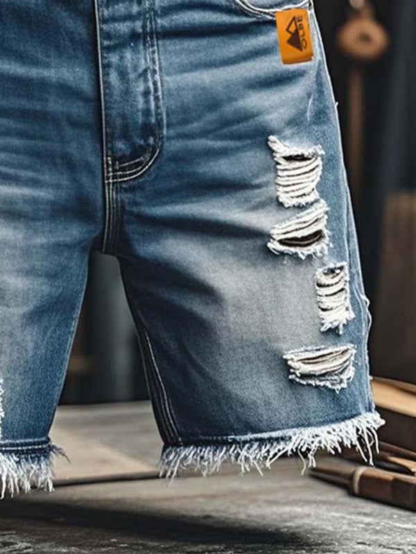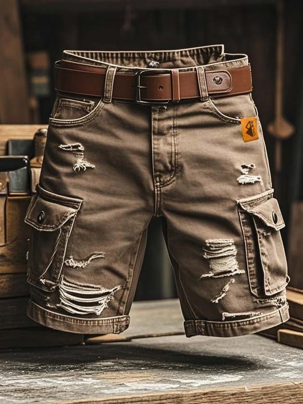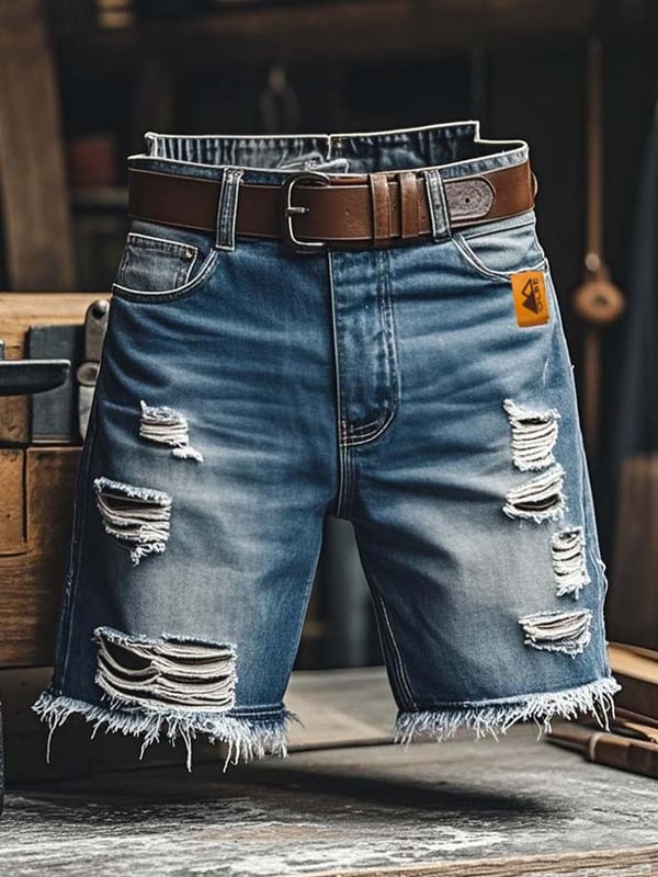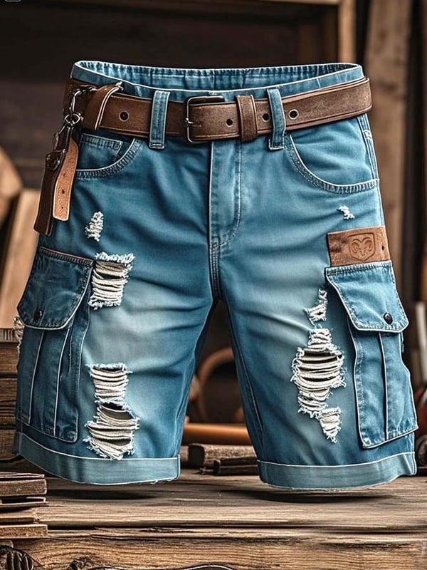 Pantaloni Scurți Din Denim Funcționali Vintage Pentru Bărbați Cu Aspect Rupt
