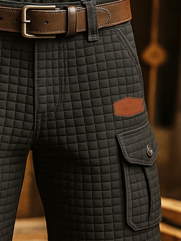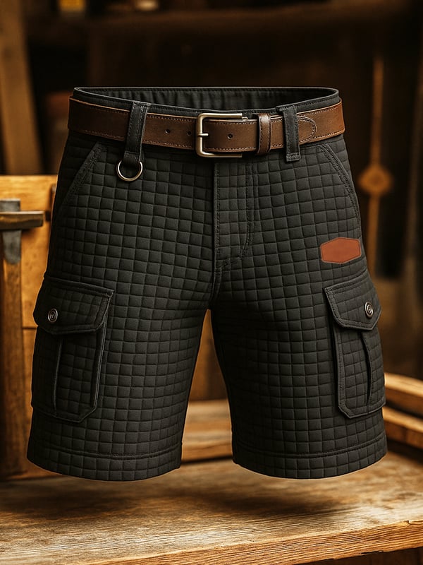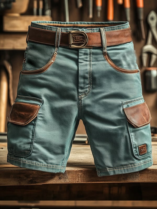 Pantaloni Scurți Vintage Pentru Bărbați Cu Buzunare și Cusături Funcționale (Cu Curea)