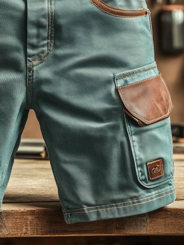 Pantaloni Scurți Funcționali Din Denim Retro Clasic Pentru Bărbați Pentru Exterior