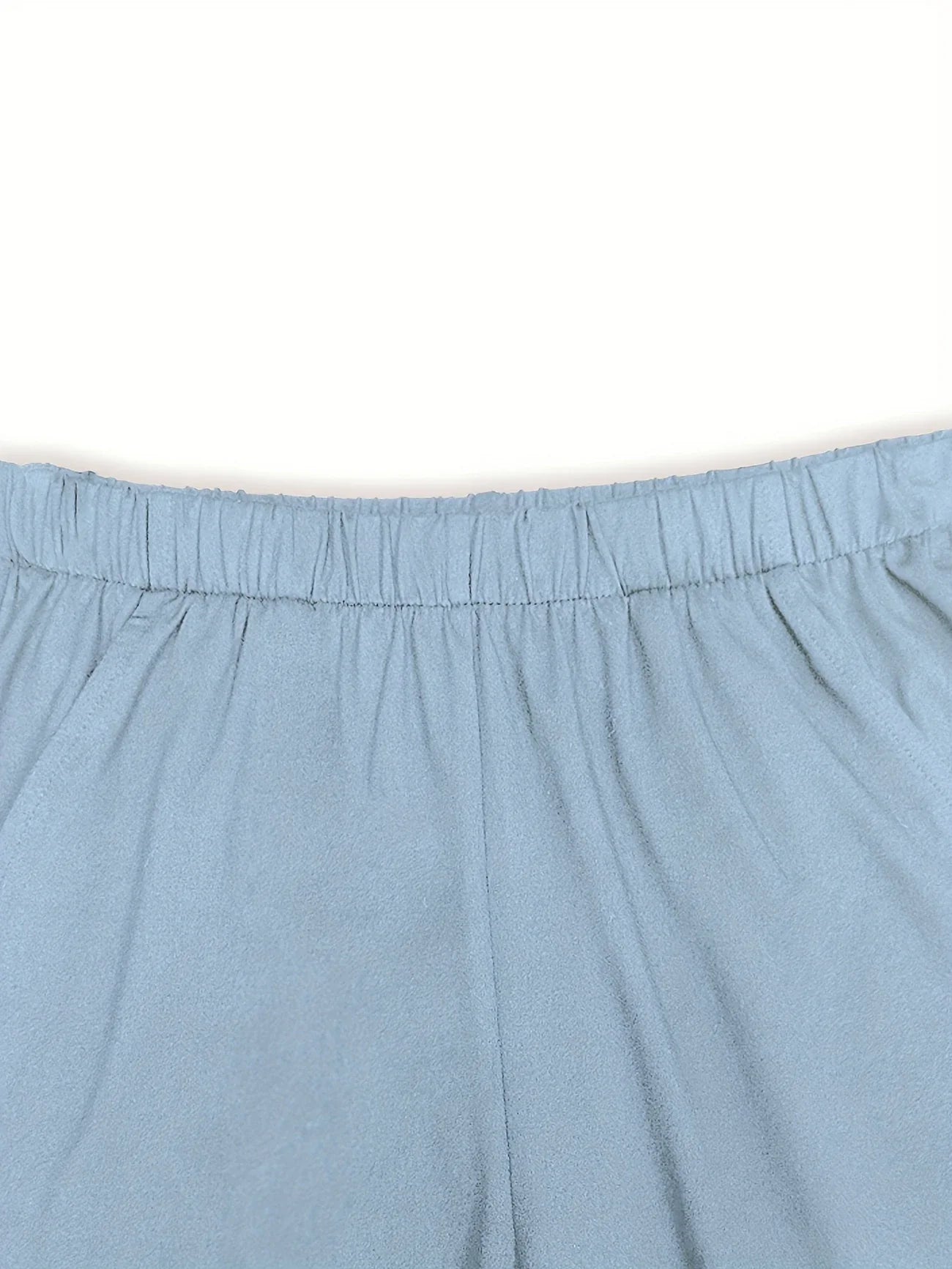 ✅Set versatil din două piese: Acest set include un top și pantaloni scurți asortați, oferind versatilitate pentru a le combina cu alte piese de bază din garderobă. Fie că asortezi topul cu blugi sau pantalonii scurți cu un maieu, acesta oferă multiple opțiuni de stil.