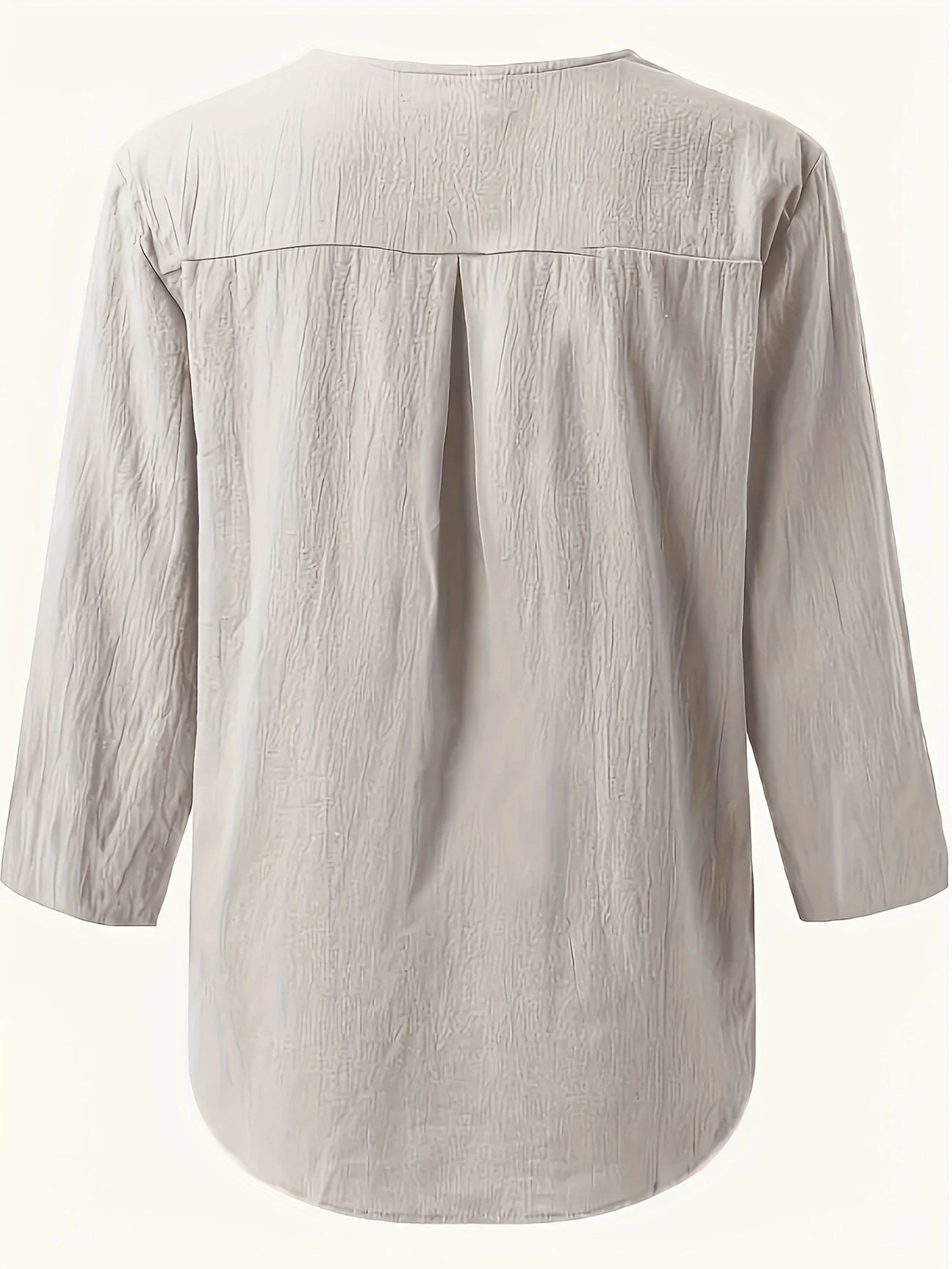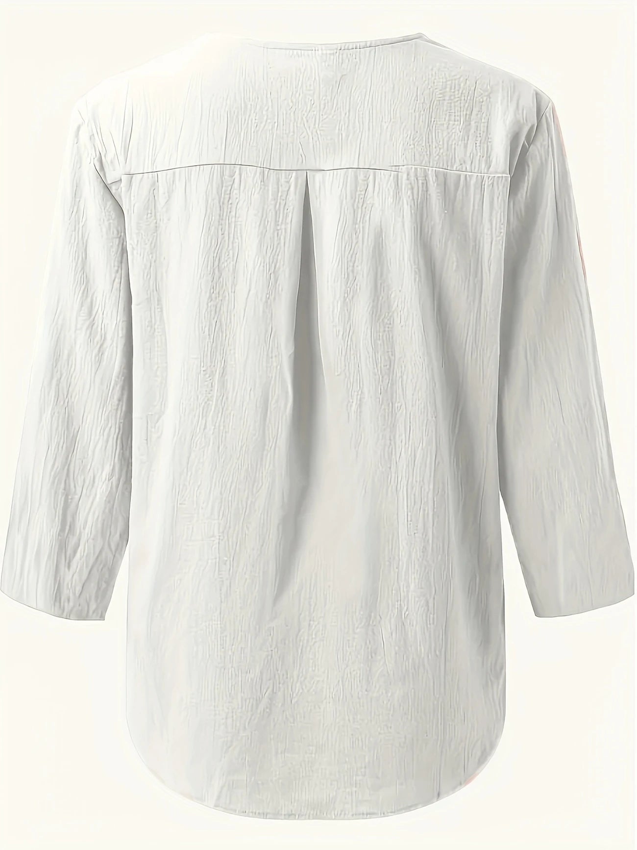 ✅Țesătură din amestec de bumbac și in: Mykaela este confecționată dintr-o combinație respirabilă de bumbac și in, care oferă o senzație de catifelare și prospețime pe tot parcursul zilei. Materialul ajută la reglarea naturală a temperaturii corpului, fiind perfect pentru purtarea îndelungată în condiții meteorologice schimbătoare. De asemenea, conferă bluzei o textură delicată și organică. Ideal pentru un confort ocazional cu o notă rafinată.