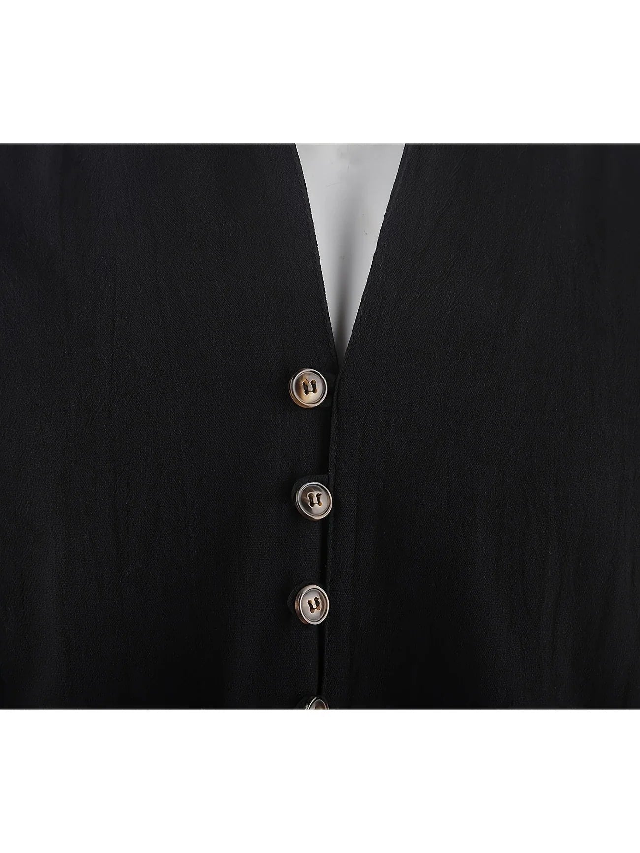 Nasturi siguri care rămân la locul lor: Fiecare nasture este întărit cu cusături de precizie pentru a rezista la uzura zilnică și la spălare. Se închid ușor și rămân bine fixați pe tot parcursul zilei. Alinierea lor adaugă, de asemenea, simetrie care completează silueta generală.