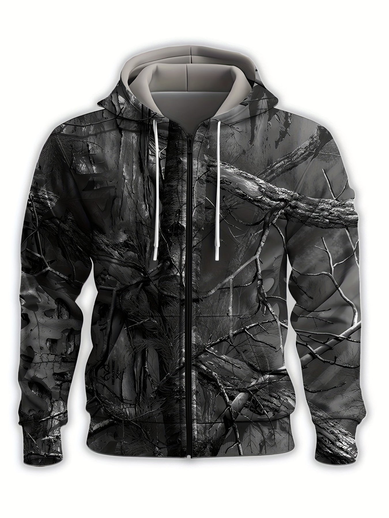 Hanorac cu glugă și fermoar, cu dizain îndrăzneț cu ramuri de pădure, pentru iubitorii naturii!